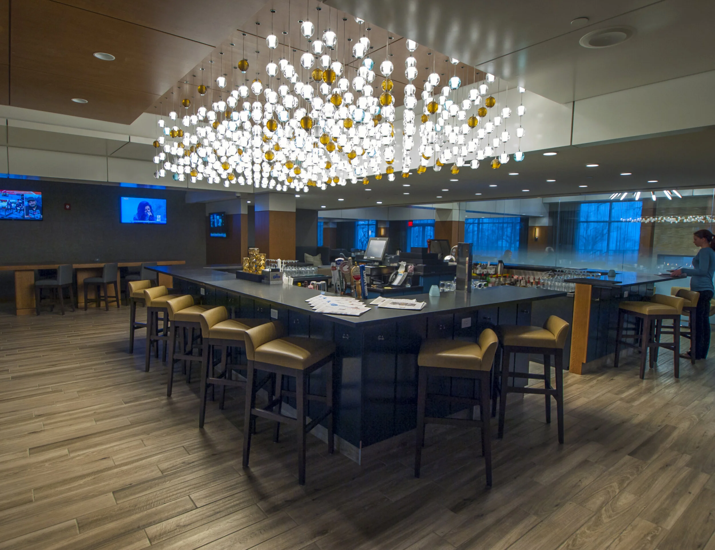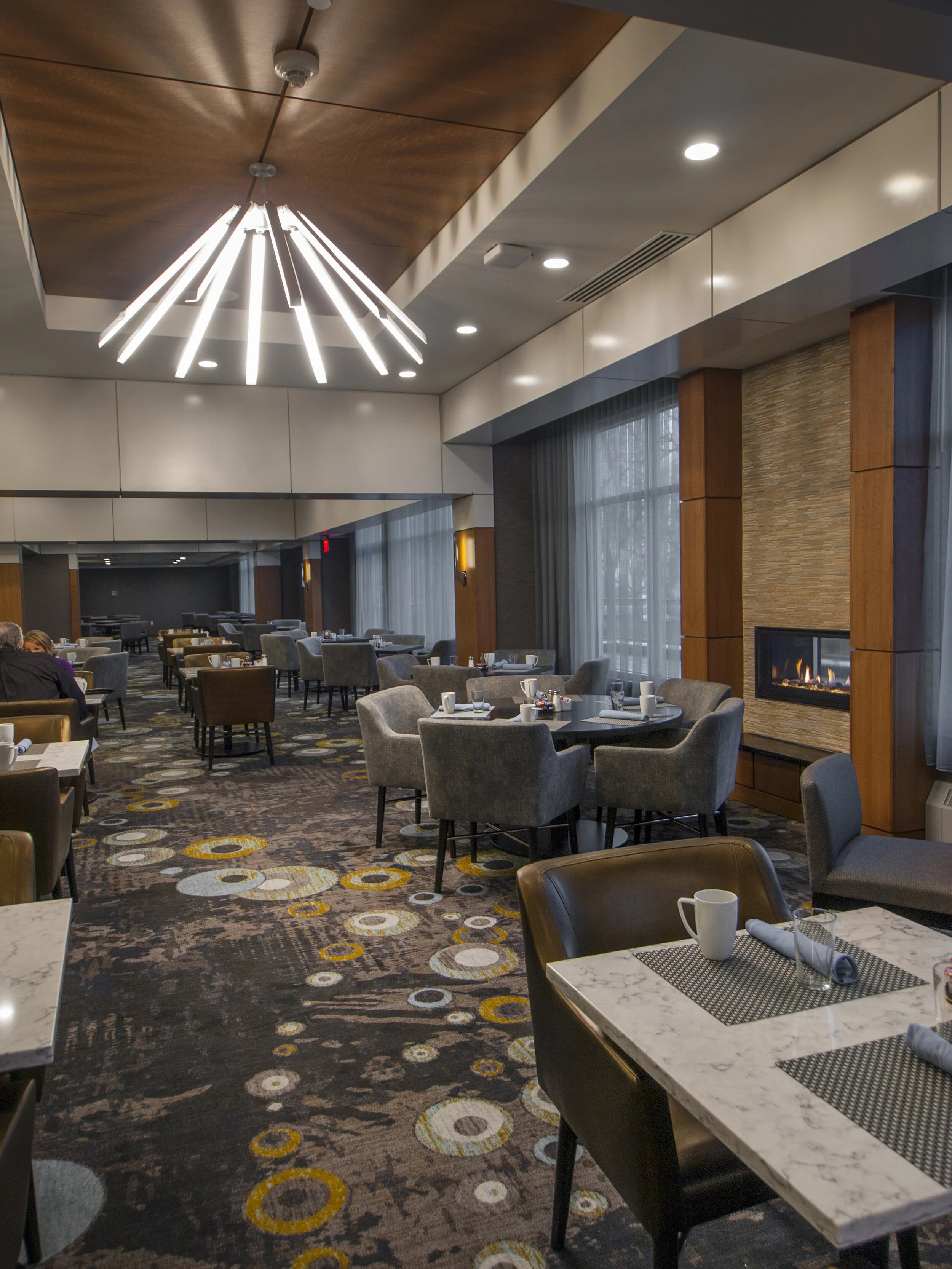Located on the edge of the Niagara River, this property was designed to pay homage to the scenic Niagara Falls that can be seen from the property. The hotel was designed in a contemporary fashion and utilized colours, shapes and imagery that references the strong presence of flowing water at this site. Moncur Design Associates Inc. was responsible for the design and documentation of the Guest Tower and Public Areas.