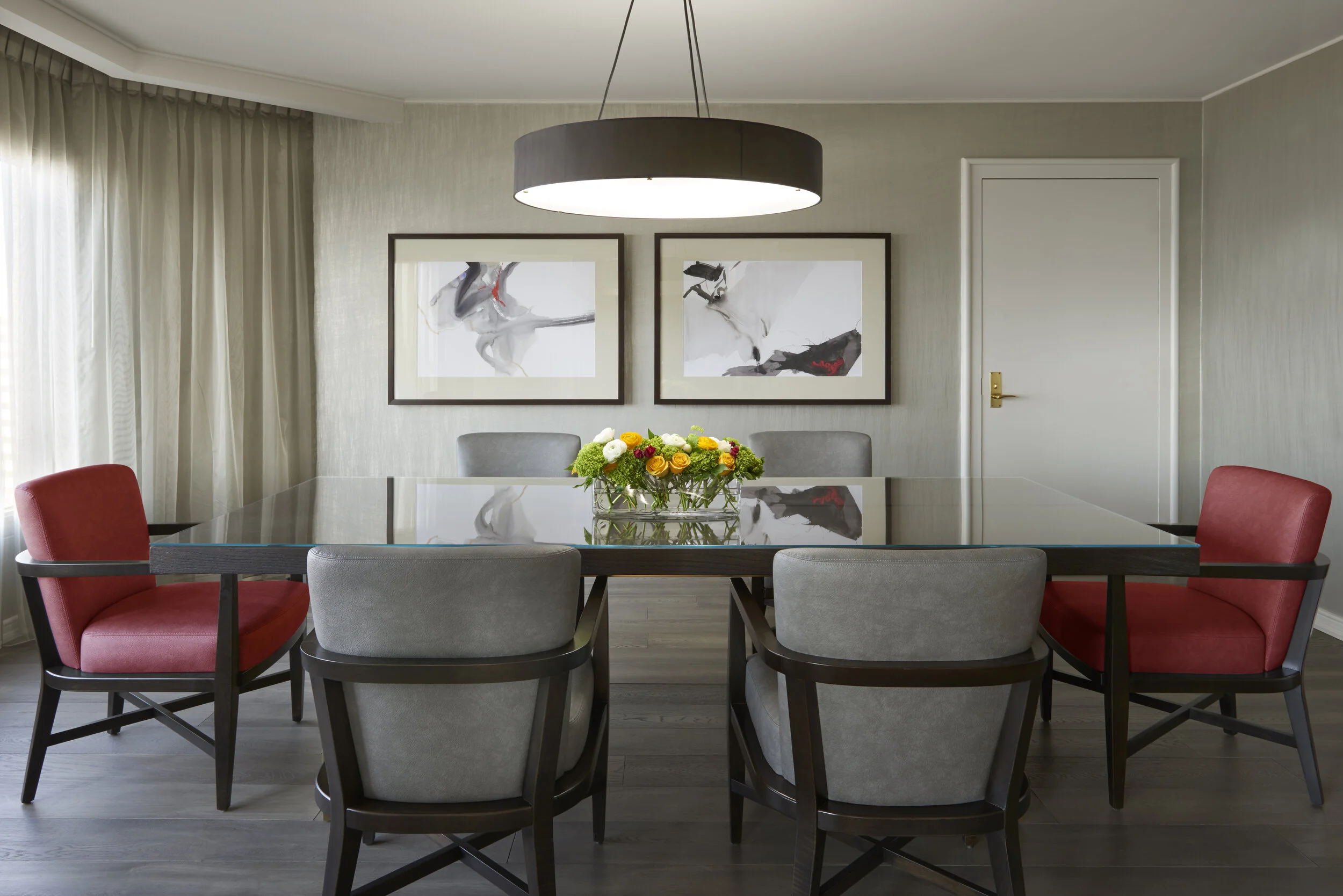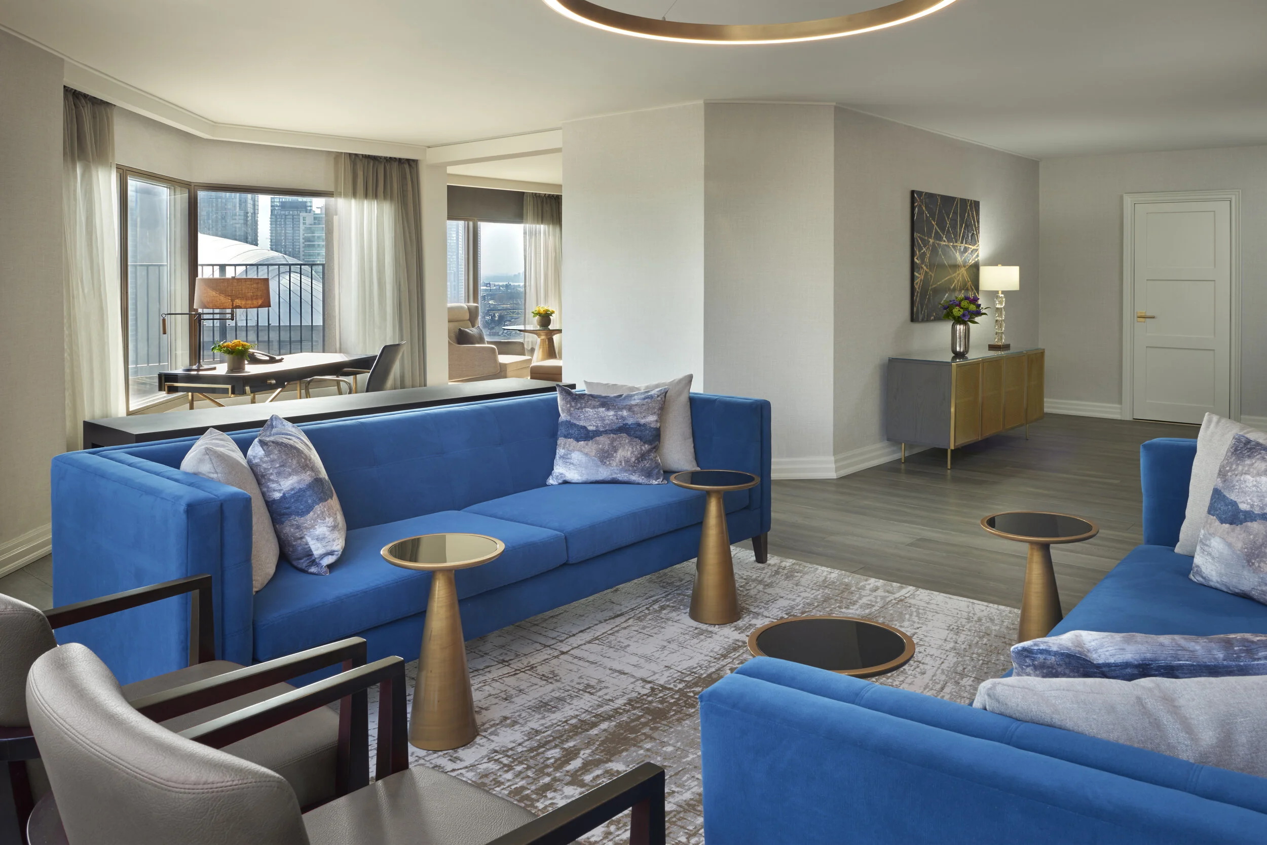 The Club Level Guestrooms and Suites are urban and sophisticated, in keeping with the InterContinental Brand and the hotel’s location in the City of Toronto. The accent colour, purple, was intentionally introduced into the scheme to instantly give the guest a feeling of affluence. The finishes and FF&E selections evoke a level of classic luxury only found in the best of hotel properties. The Club Lounge was designed to act in concert with the Club Level Guestrooms and Suites, while not being a ‘matched set’. The design direction developed for the Club Lounge compliments the design scheme of the guest accommodations, by offering the preferred Guest a sophisticated environment within which the can both start their day and finish their evening with all the required amenities. Soft rich blues and golds in the furniture items and finishes are complimented by the rich dark woods and by the soft pleasing sheen of the bronze fittings, creating a warm yet cultivated venue. The Presidential Suite was renovated with a fully unique and custom design scheme that transformed this multi-bay space into a grand suite for elevated guests. Additionally, the Main Lobby underwent a soft goods renovation and the Pool and Changerooms were upgraded to receive modern and fresh design finishes. The property truly reflects it’s 4-Diamond Luxury Hotel rating.