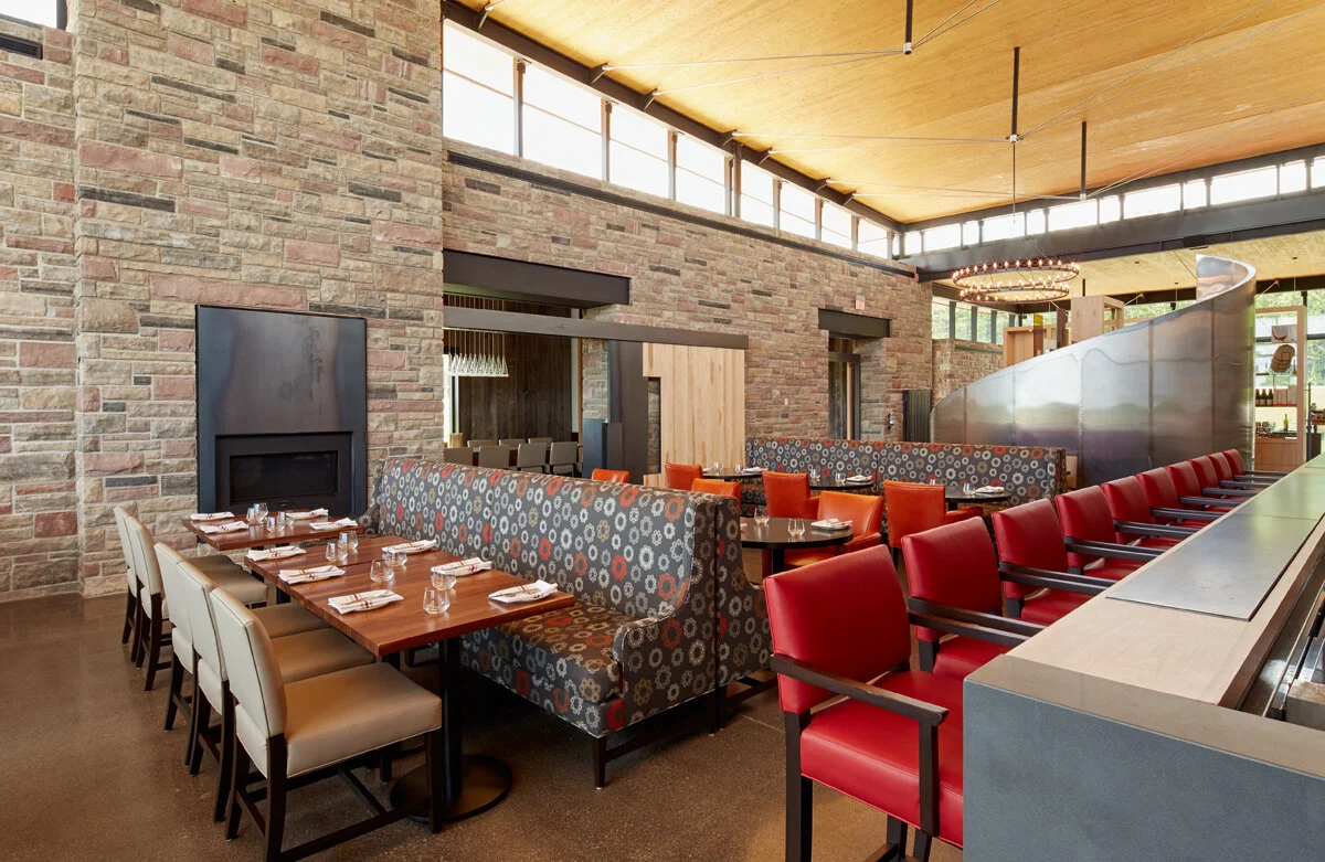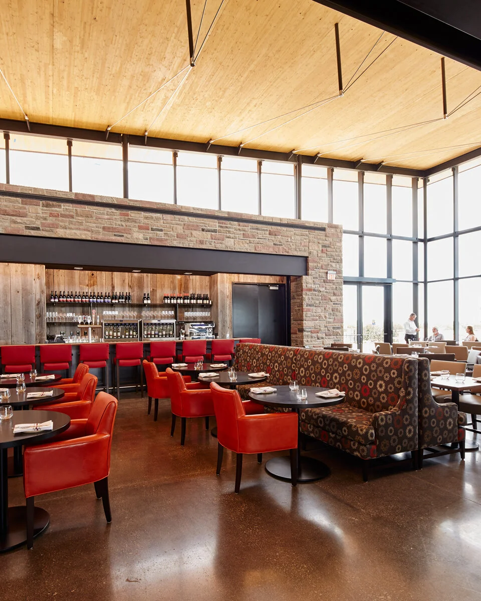 Moncur Design Associates Inc. developed the FF&E package for the Redstone Winery restaurant and terrace located in Ontario’s wine region. Moncur Design Associates Inc. thoughtfully used a classic design scheme paired with rustic elements for a timeless aesthetic. Utilizing the signature red colour with a mixture of rust tones, inspired by the local red clay and dirt that covers the property, was an important feature that ensured the spaces was designed with the Redstone brand in mind. The result was a unique location to dine where guests can sample the VQA wines after exploring the 38-acre vineyard and property.