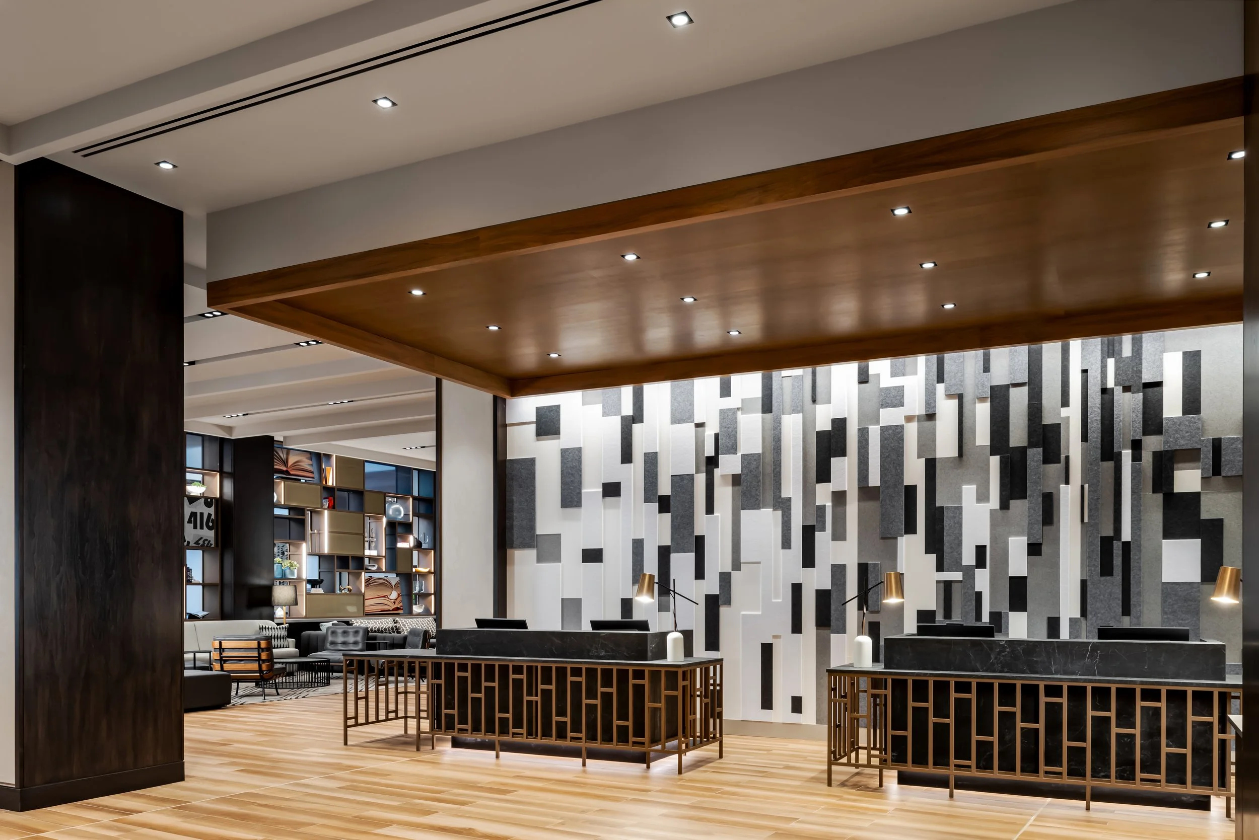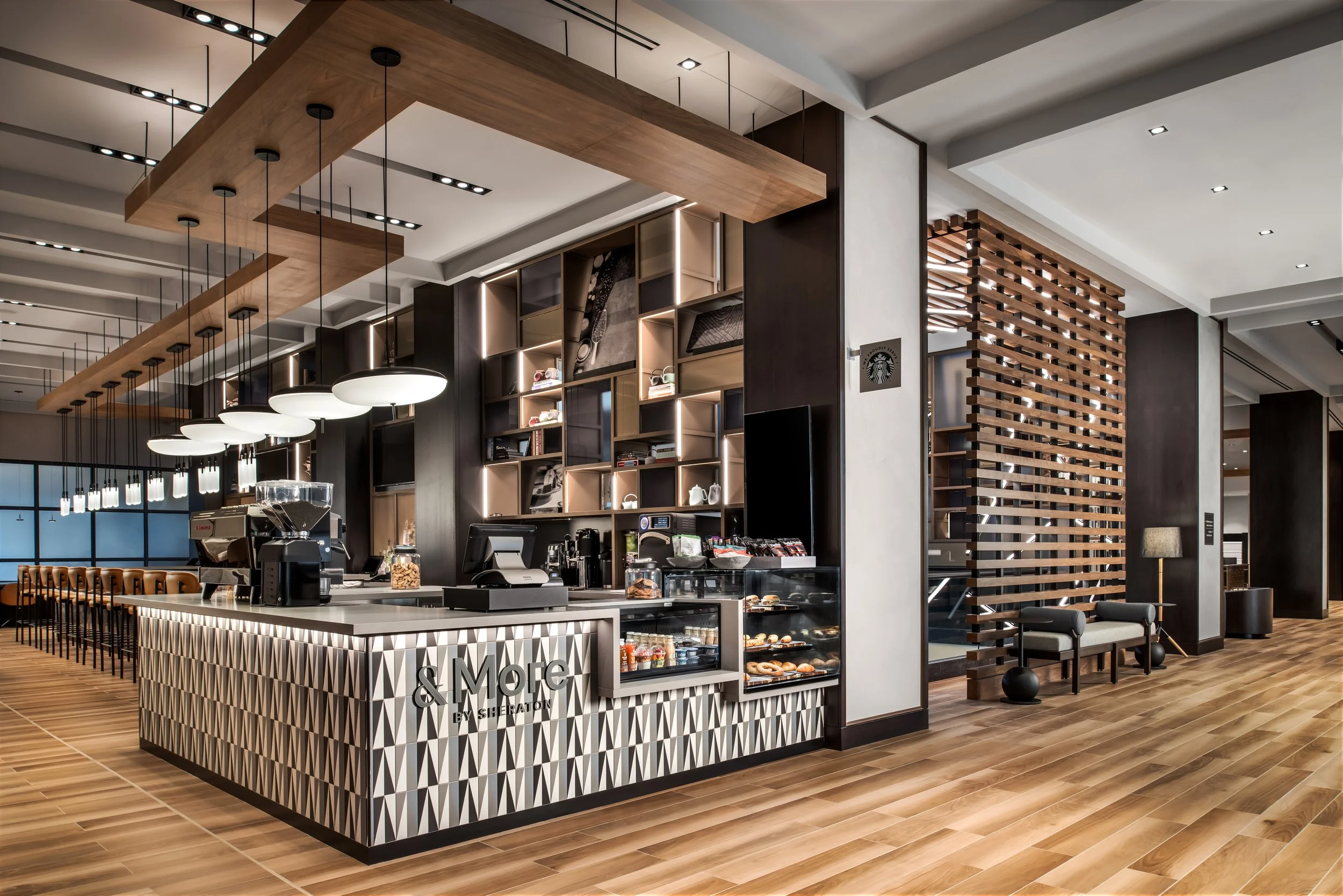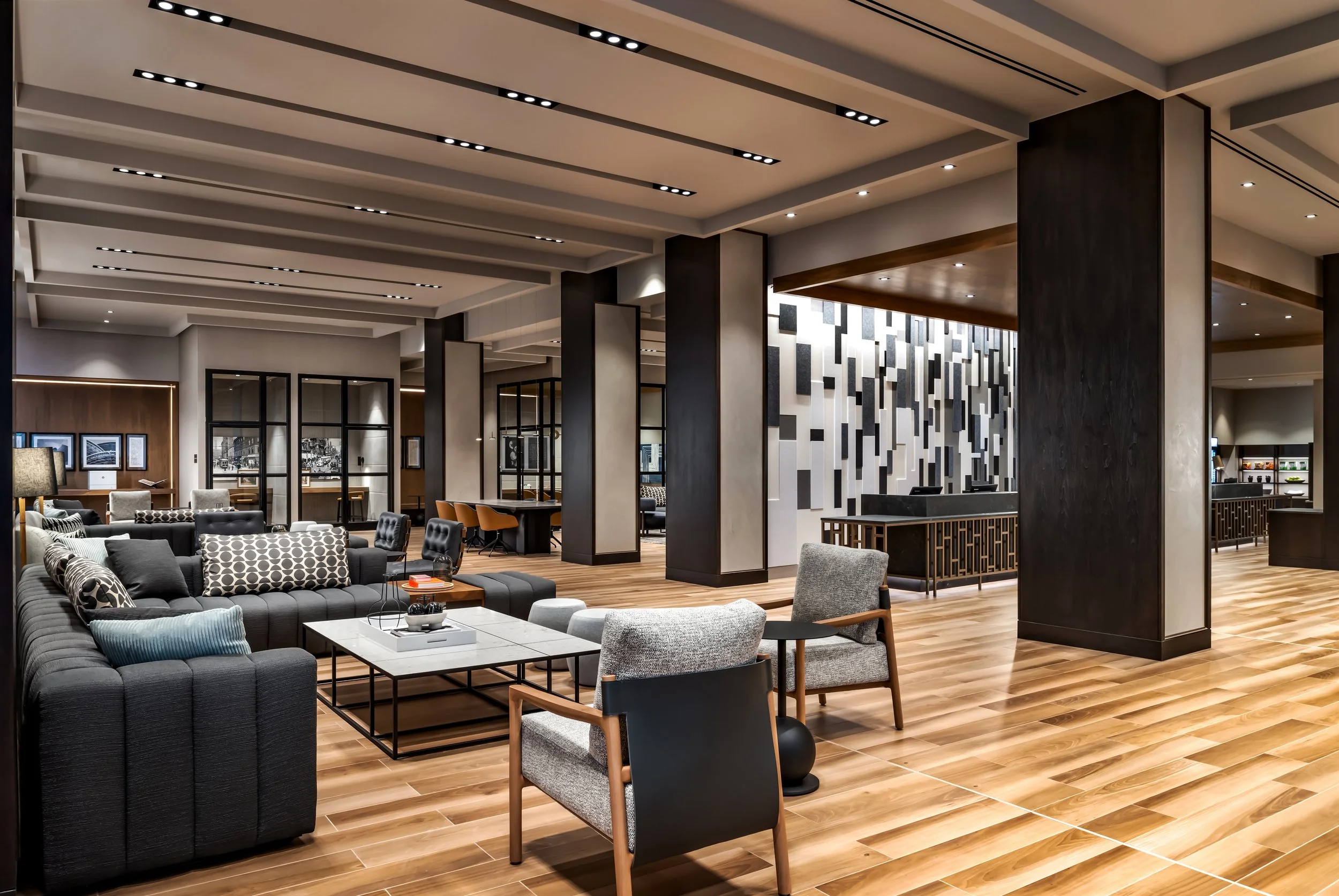 Being situated in Canada’s busiest airport (Pearson), this property welcomes guests from all over the world, and the Sheraton Guest Profile defines the type of traveler that frequents this hotel. The design scheme combines the values of the Sheraton Brand and the distinctive features of YYZ, Toronto and Canada. The noun ‘gateway’ has several meanings, all of which are supported by the design concept; an opening, a means of access or entry, a means of achieving a state or condition, and most importantly a connection between different elements. The Sheraton Gateway property is now the heart of the global network where guests are part of not only the Sheraton community but also a larger accepting and unified collective, the ‘gateway’ to or from Canada. Moncur Design Associates Inc. is responsible for the entire extensive renovation which saw the completion of the entire Public Spaces which includes the Reception, Lobby Lounge, Coffee Bar / Bar, Restaurant, Studios, Club Lounge and the Functions Spaces. The full Guest Tower was also renovated using a customized Sheraton Standard design package for 6 floors and a total of 482 Guestroom and Suites.