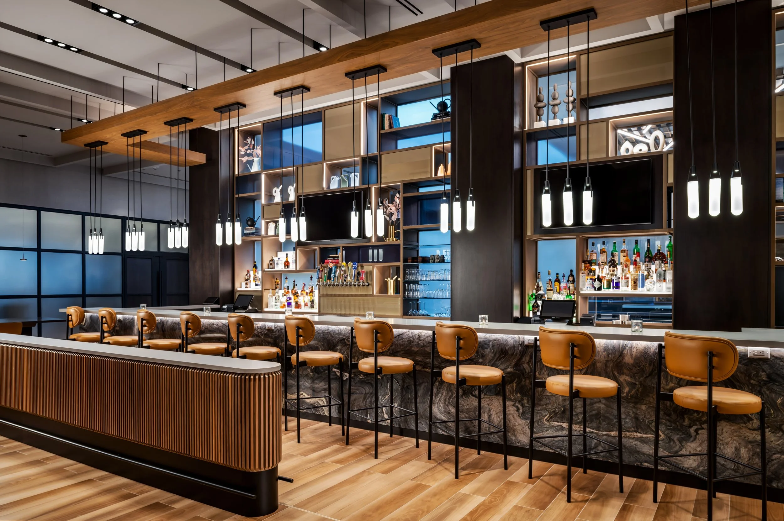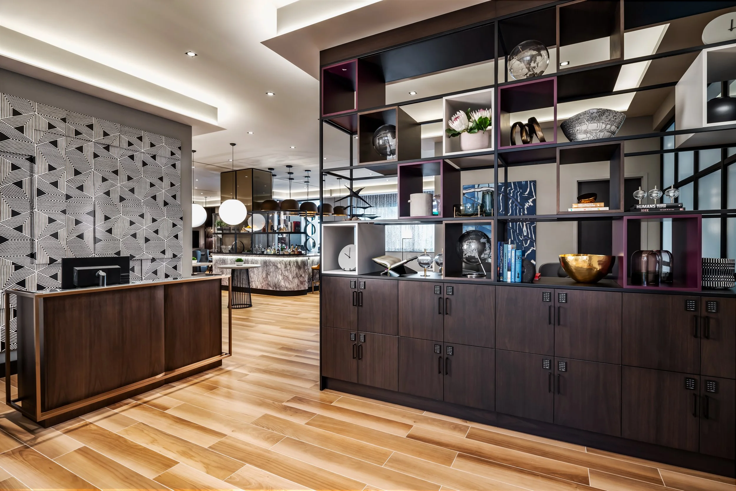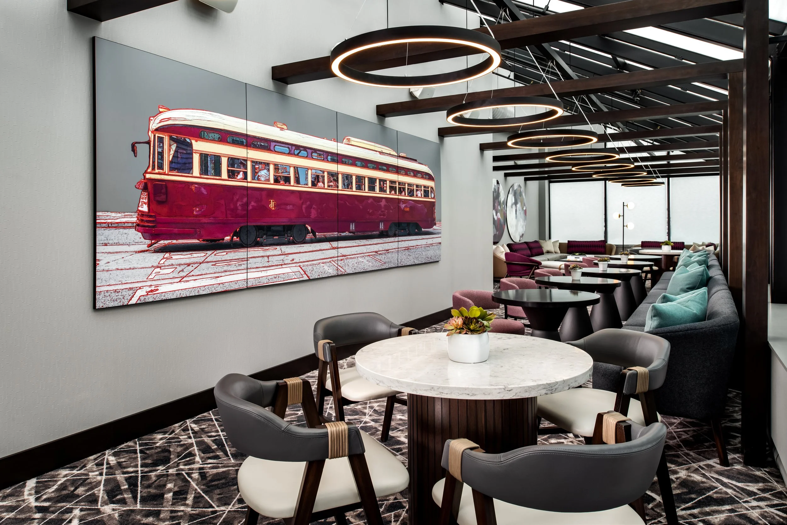 Being situated in Canada’s busiest airport (Pearson), this property welcomes guests from all over the world, and the Sheraton Guest Profile defines the type of traveler that frequents this hotel. The design scheme combines the values of the Sheraton Brand and the distinctive features of YYZ, Toronto and Canada. The noun ‘gateway’ has several meanings, all of which are supported by the design concept; an opening, a means of access or entry, a means of achieving a state or condition, and most importantly a connection between different elements. The Sheraton Gateway property is now the heart of the global network where guests are part of not only the Sheraton community but also a larger accepting and unified collective, the ‘gateway’ to or from Canada. Moncur Design Associates Inc. is responsible for the entire extensive renovation which saw the completion of the entire Public Spaces which includes the Reception, Lobby Lounge, Coffee Bar / Bar, Restaurant, Studios, Club Lounge and the Functions Spaces. The full Guest Tower was also renovated using a customized Sheraton Standard design package for 6 floors and a total of 482 Guestroom and Suites.
