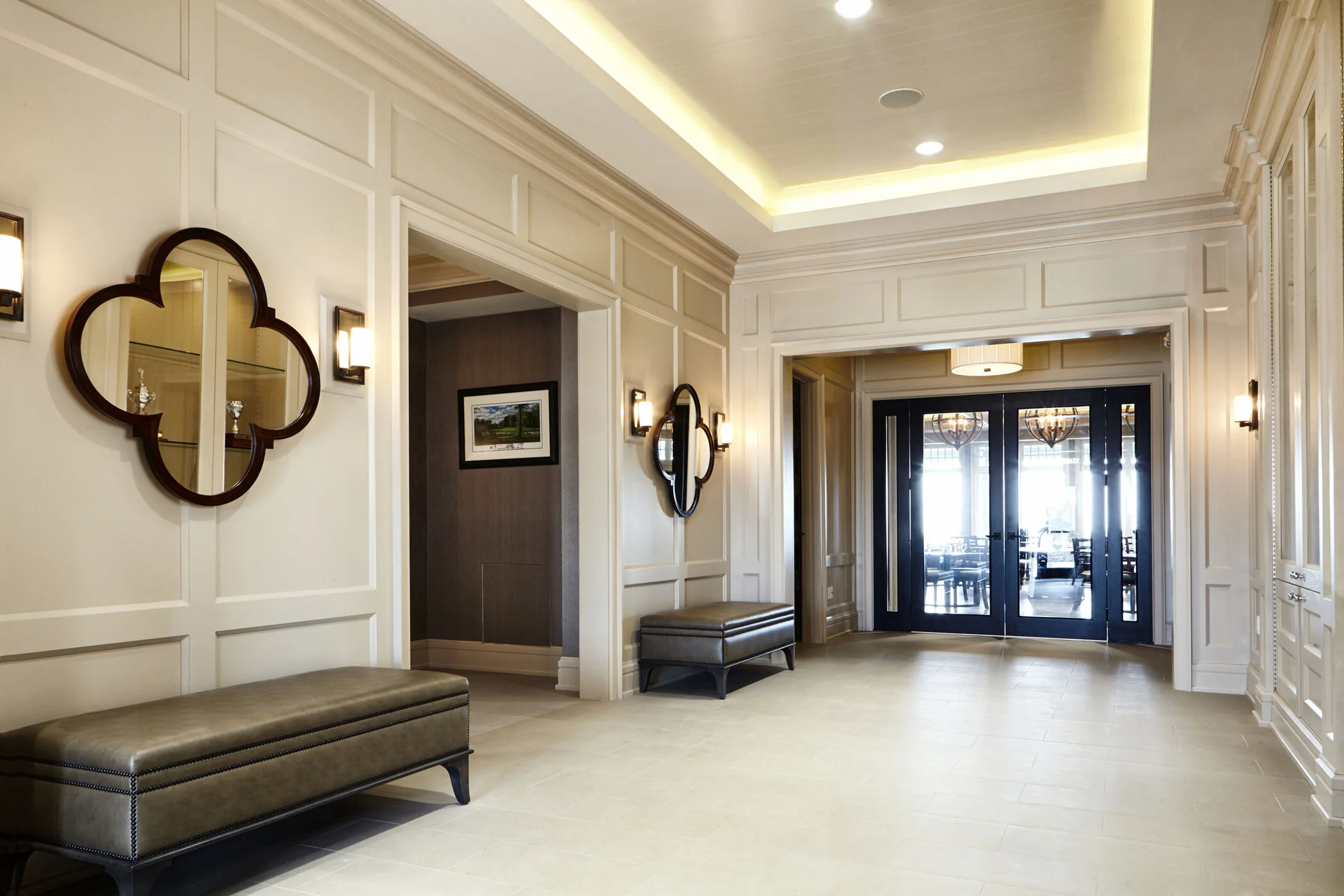 Moncur Design Associates Inc. created the design package for the Clubhouse at this Greater Toronto Area private golf course. The Main Level features the dining facilities that have scenic views of the golf green and the surrounding heritage land. The dining facilities features a Lounge, Grill Room, Fireplace Room, Bar and Patio which provides the perfect upscale and relaxing environment for golfers to grab a bite after their 18 holes. The Main Level also houses a luxurious Banquet Hall and Private Dining Room that is commonly used for weddings and other special events, Public Washrooms, The Pro Shop, Administrative Offices, and a Boardroom. The Lower Level contains the Women’s, Men’s and Junior Boys Locker Rooms.